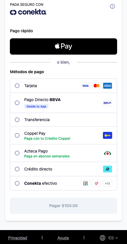 customery usarlo al crear una orden para mostrar el Conekta CheckoutActualmente está disponible a través de nuestro programa de Early Access. Para solicitar acceso, completa el formulario a continuación. Nuestro equipo revisará tu integración y te contactará si tu configuración de checkout es compatible.